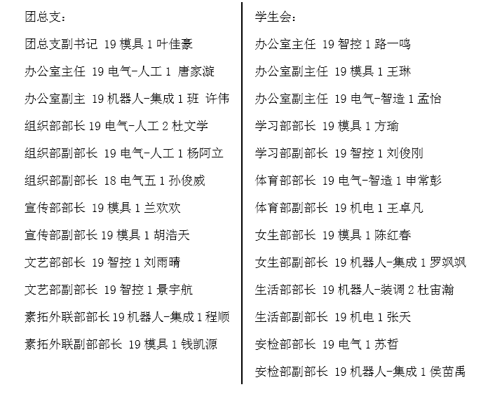 经研究决定,机电工程系01届团学干部竞选工作已经完成,名单公示如下: