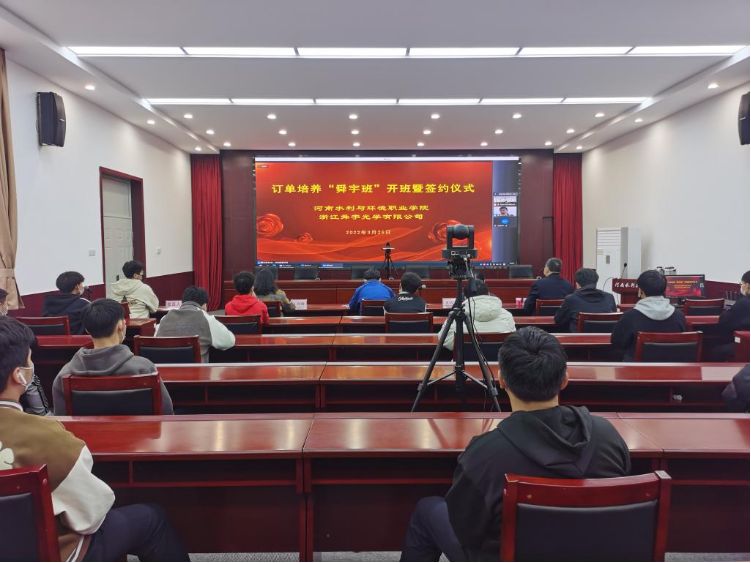 3月25日,公司与浙江舜宇光学有限公司在花园路校区学术报告厅举行订单培养“舜宇班”线上开班仪式。副董事长黄功学、蒋彦成,机电工程系、人才招聘处负责人,浙江舜宇光学有限公司人力资源部部长周蜜等企业代表,订单培养班员工代表参加仪式。机电工程系主任王利卿主持仪式。