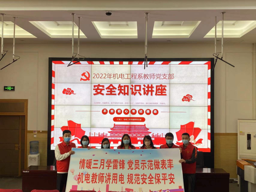 “情暖三月学雷锋,党员示范做表率”,为进一步弘扬雷锋精神,做好党员示范带头作用,机电工程系教师党支部于3月30日上午8:30在北教三阶开展了“安全第一记心中”的主题讲座活动。