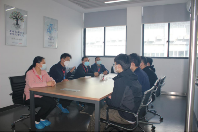 在深圳大族激光全球智造中心,大族激光科技产业集团股份有限公司副总裁王瑾,能源行业管理与拓展部总经理、大族锂电研究院经理郭启军,显示与半导体装备事业部技术中心总监卢建刚、大族激光智能装备科技(常州)有限公司总经理党辉、大族激光智能装备科技(荆门)有限公司总经理鲁晖等热情接待。