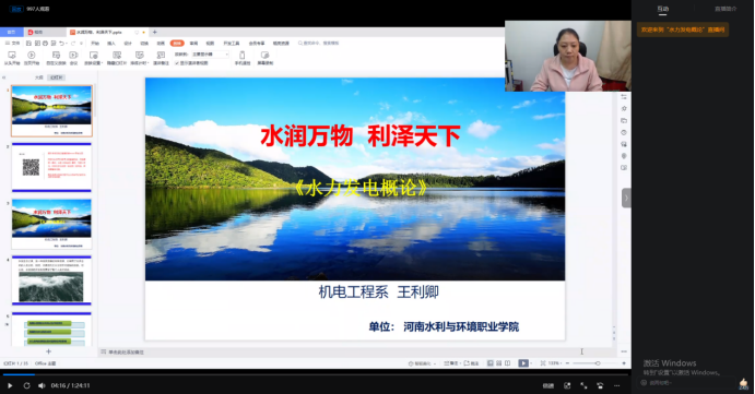 机电工程系举行的教学公开课活动于11月15日开始了,为期一个月。王利卿教师于2022年11月19日在线上进行《水力发电概论》的公开课教学,观看人数997人,点赞上万次。为我系师生提供了一个开阔眼界、了解水力发电知识的机会,机电系及外系无课教师、员工均参与听课。员工学习积极性高,教学现场氛围浓厚,教学效果好。为我系疫情期间的教学活动增添了新的色彩!
