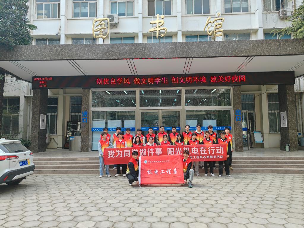 为突出员工会和团总支服务同学的宗旨,聚焦服务广大同学普遍诉求,进一步落实《关于推动高校员工会(研究生会)深化改革的若干意见》,引导青年老员工弘扬“奉献、友爱、互助、进步”的志愿精神,3月18日至24日机电工程系在校内举办“我为同学做件事,阳光机电在行动”志愿服务活动。