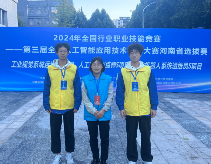 10月18日至20日,由河南省人力资源和社会保障厅主办,郑州市、新乡市人力资源和社会保障局承办,郑州商业技师公司、河南经济贸易技师公司等院校协办的“2024年全国行业职业技能竞赛——第三届全国人工智能应用技术技能大赛河南省选拔赛-工业机器人系统运维员S赛项”在郑州商业技师公司隆重举行。我系任平英老师带领23机器人2班石佳羿、柴靖宜同学参加比赛,任平英老师也是工业机器人系统运维员S赛项的裁判。经过为期三天的理论和实操激烈比赛。石佳羿、柴靖宜同学取得了工业机器人系统运维员S赛项第三名。
