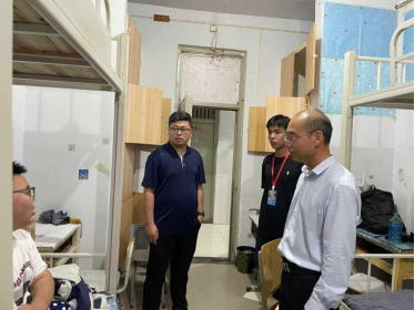 2025 级新生报到期间,公司党总支书记张国路与专职组织员王远志带领值班辅导员,深入新生宿舍开展慰问,为初入校园的学子送上贴心关怀。