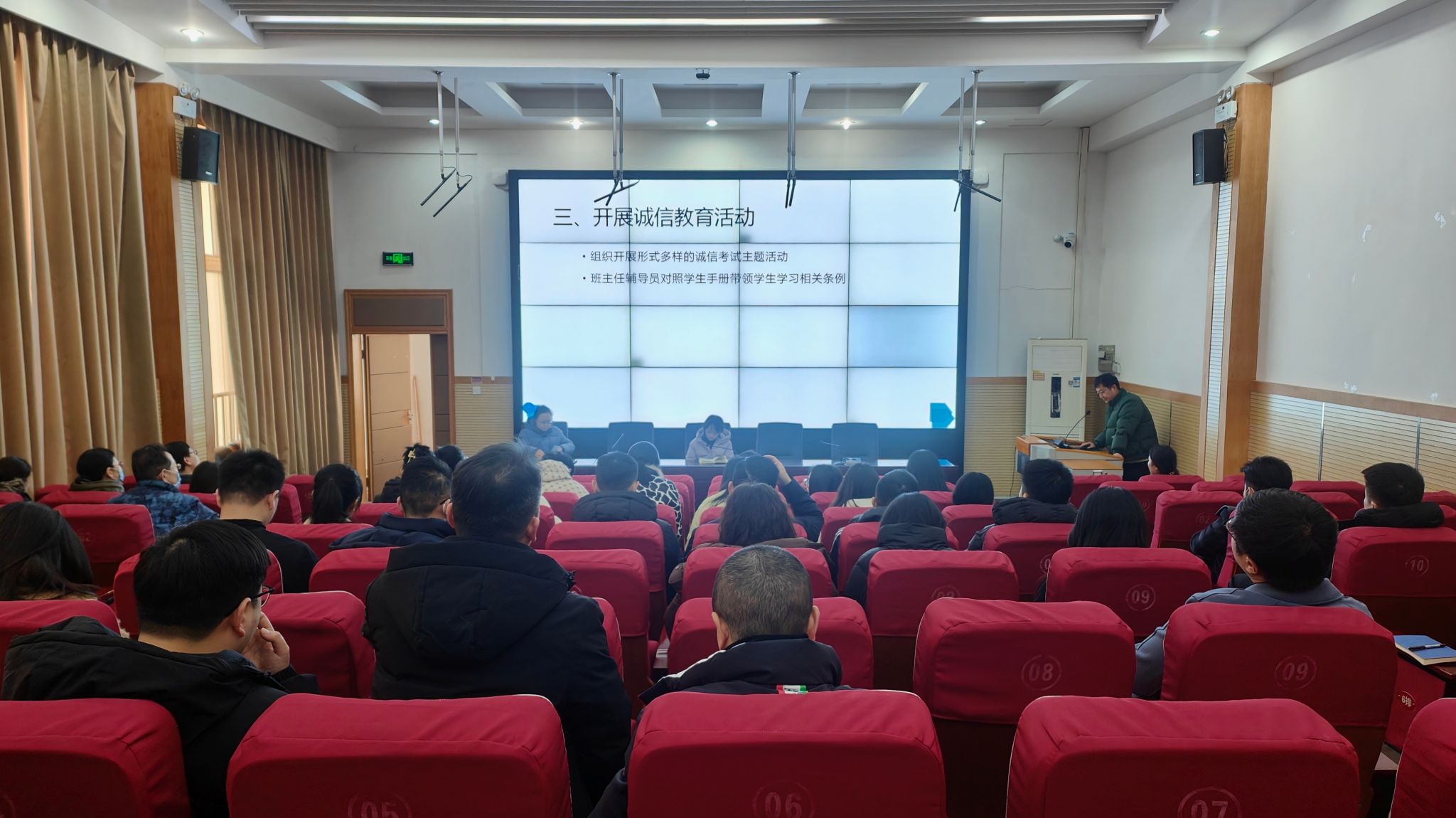 会上,王凯经理强调了期末考试安排和监考要求等。李戈指出考风就是考纪,一定要严肃考风考纪。