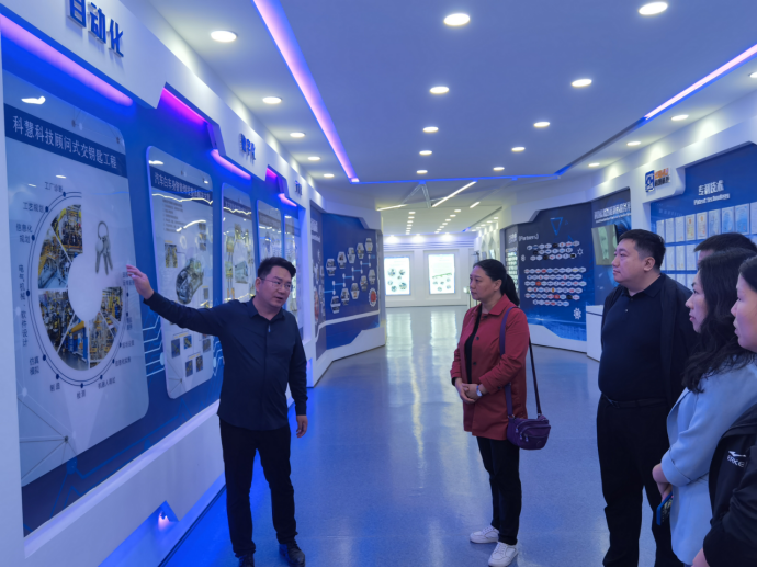 调研中,张震先是介绍了本公司的发展历程、企业文化、产业优势、未来规划、岗位目标及就业方向等,带领参观了公司的各个生产车间及培训场地。
