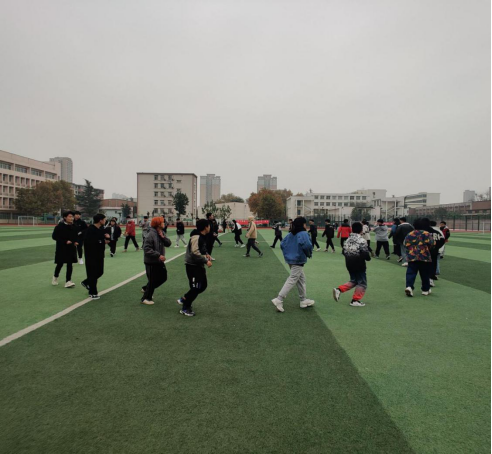 为丰富同学们的课余活动,增加同学之间的友谊,11月24日、25日上午,机电工程系在操场举办了为期两天的三人成团比赛。