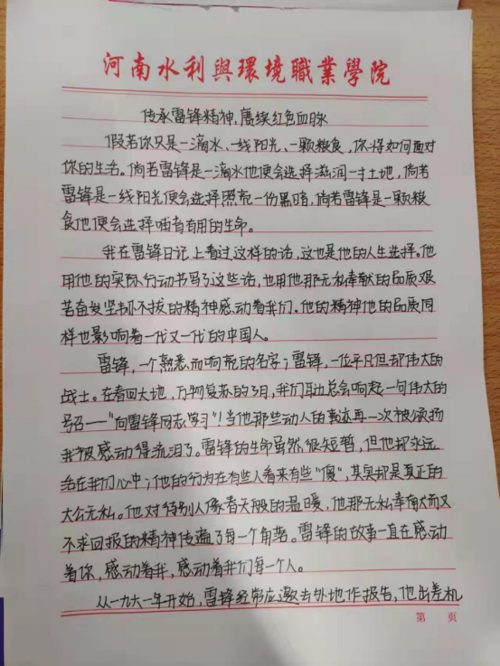 为弘扬雷锋精神、倡导社会文明新风,3月27日机电工程系开展了“传承雷锋精神,讲述雷锋故事”主题征文活动。