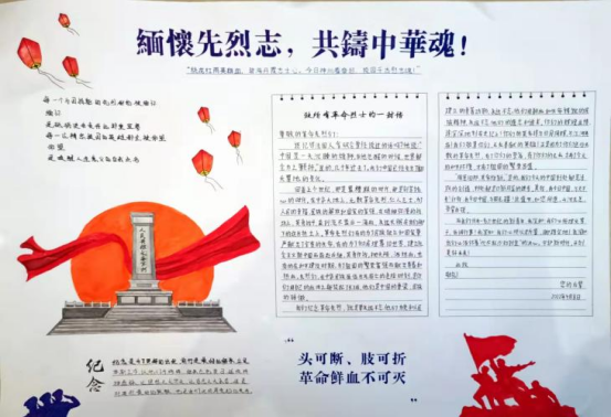 活动中,同学们以“给先烈的一封信”为主题,通过手工作品、手抄报、信件等形式参赛,用纸笔缅怀革命先烈的光辉事迹,抒发内心敬佩之意。表达了对无数革命先烈们为了和平、为了国家、为了人民而不惜付出自身生命的崇高敬意,营造出了缅怀先烈、崇尚先烈、学习先烈的浓厚学习氛围。