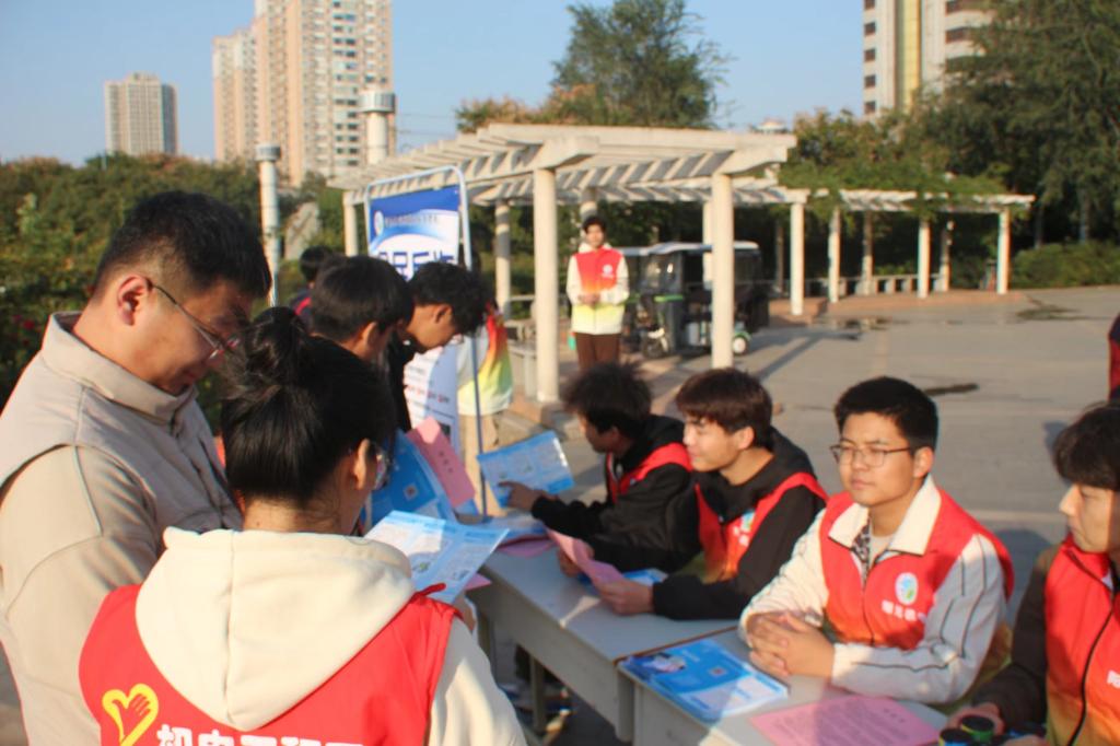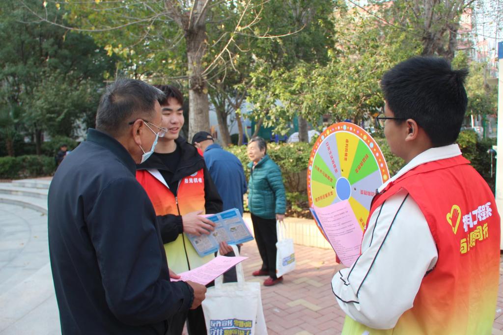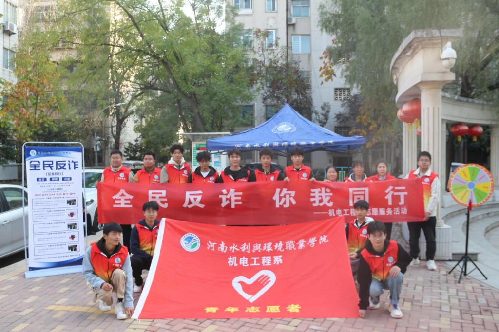 当前,电信网络诈骗犯罪已经成为发案量最多、涉及面最广、人民群众反映最强烈的犯罪类型,严重侵害了群众切身利益,侵蚀了社会诚信根基,影响了社会和谐稳定。为进一步提升群众反诈意识和识骗防骗意识,加大普法宣传力度,营造全民反诈的浓厚氛围和安全稳定的社会环境,11月7日机电工程系团总支组织20名青年志愿者到郑州市金水区融园社区和东风渠滨河公园开展“全民反诈,你我同行”反诈宣传社会志愿服务活动。