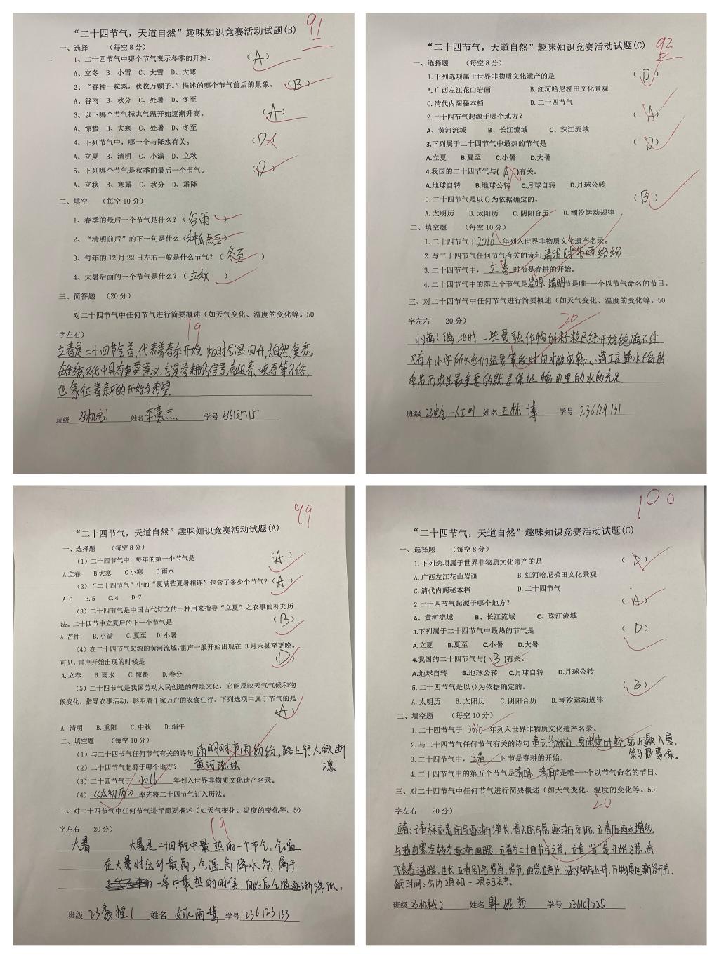 中国古代按照节气编写的二十四节气歌,是我国劳动人民独创的文化遗产,它能反映季节的变化,在农耕为主的古代指导着农事活动。本次活动采用线下知识答题的形式,围绕二十四节气所代表的含义及传统习俗设置考题,考察大家对于节气的了解程度,帮助大家了解农耕文明的智慧。参赛选手们认真备赛,积极作答,最终评选出一等奖3名、二等奖7名、三等奖10名。
