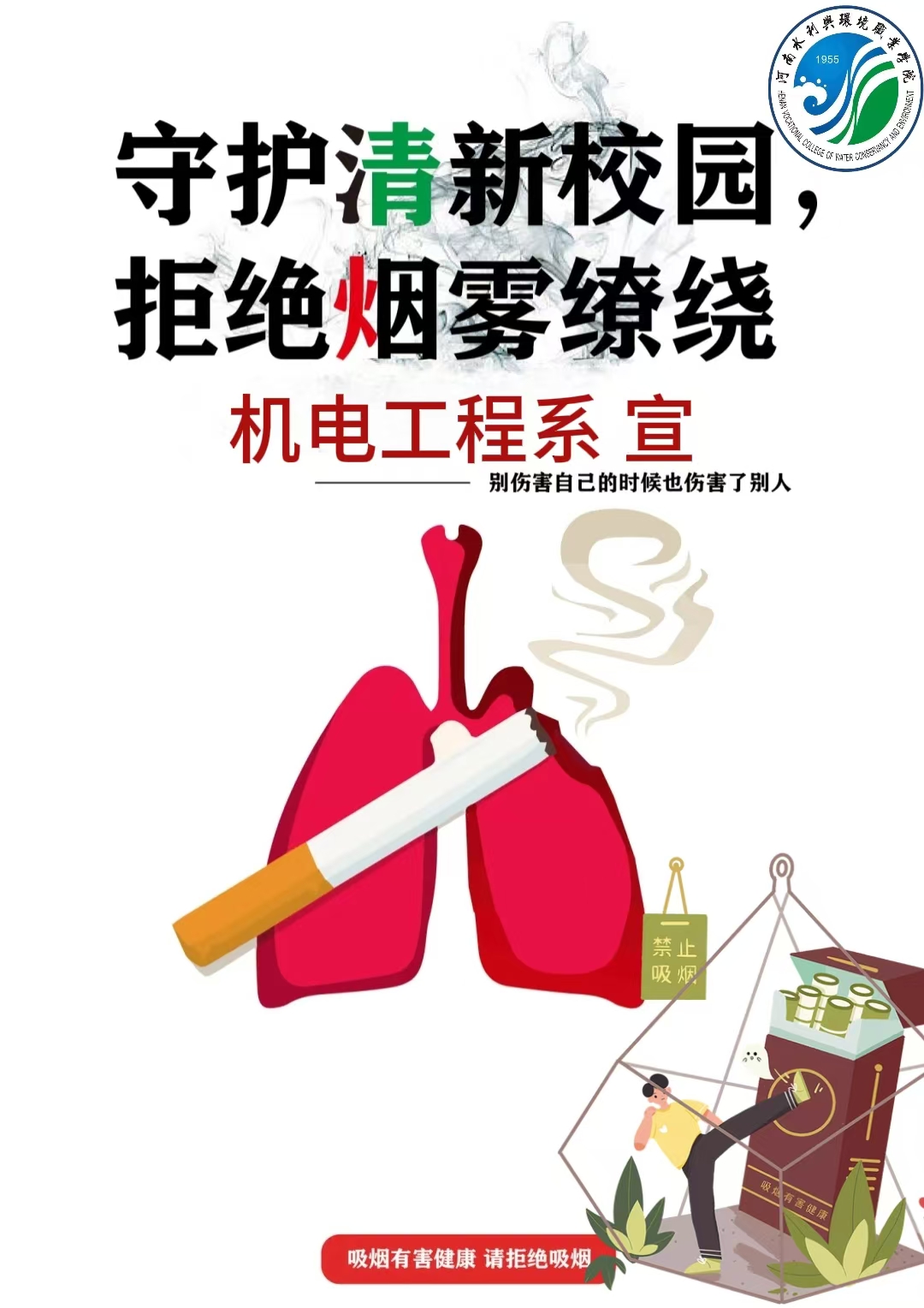 为营造文明美丽的校园环境,给全校师生创造一个舒适、健康的学习和工作环境,同时引导员工树立正确的健康观念,培养健康的生活方式和行为习惯,机电工程系团总支于11月6日组织开展了为期三天的线下“无烟校园,青春同行”禁烟控烟系列活动。