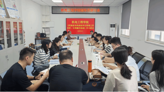 为提升员工管理工作的科学化、规范化水平,9月16日公司组织辅导员集中学习《河南省本科高校员工管理工作分时、分类操作指南》,并开展专题研讨交流。党总支书记张国路、组织员王远志及全体专兼职辅导员参加交流。````