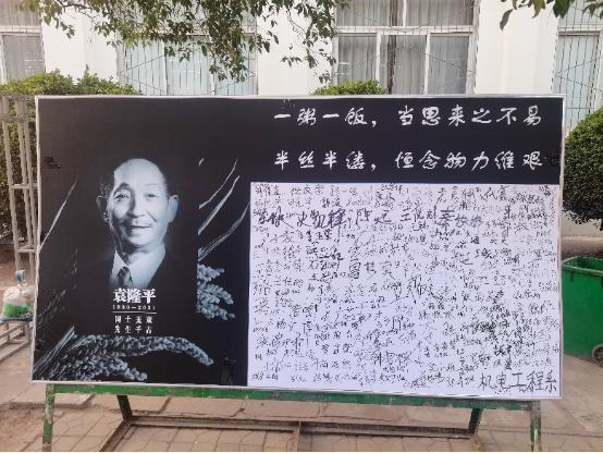 为了深切怀念和致敬伟大的“杂交水稻之父”——袁隆平院士,5月27日下午,机电工程系的在校师生在南苑餐厅门口自发组织“国士无双,先生千古”缅怀哀悼活动。