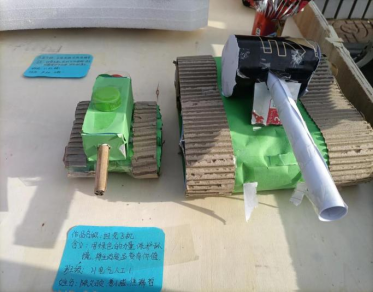 活动中,同学们以个人或小组的形式参加比赛,通过细心观察和思考,对身边的旧物加以改造创新,做到变废为宝。同学们奇思妙想,将塑料和废纸做成了漂亮的花瓶;旧铝罐瓶做成了美观的茶壶、椅子;费纸片做成了小车、坦克、花篮……大家的参赛作品设计巧妙精致,各具特色。