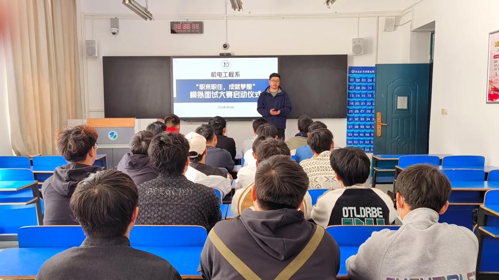 为引导员工树立正确职业目标,锻炼员工面试的心理素质,提升求职面试和就业应聘能力,机电工程系于4月4日举办“职来职往,成就梦想”模拟面试活动启动仪式,系党总支副书记王远志和学管老师参加此次活动。