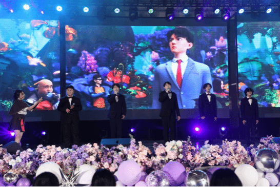 晚会在热血沸腾的乐队联唱《逆战》《着魔》中震撼开场,瞬间点燃现场气氛。独唱《迷途羔羊》以深情演绎寄语毕业生告别过往、阔步新程;舞台剧《红包迷局》通过诙谐剧情揭示校园诈骗陷阱,兼具警示意义与观赏性;合唱《世界赠予我的》以悠扬旋律唤起青春记忆,勾勒出生活的美好与挑战;戏曲《穆桂英挂帅》将传统唱念做打与现代舞台美学创新融合,展现中华戏曲的独特魅力;相声《兄弟情深》以风趣对白勾勒同窗情谊;街舞《whiplash》以动感舞姿诠释青春活力;合唱《鹿be free》作为经典动画主题曲,以温暖励志的旋律传递追梦力量,引发全场共鸣;话剧《八十一难》以创意改编重现经典篇章,展现团队协作精神;唱跳《像你这样的朋友》带领观众重温校园情谊的珍贵瞬间。晚会最终以《是老师是员工》《再见》两首合唱深情谢幕,在光影交织中定格青春记忆。