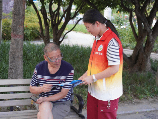 活动当天,志愿者们准时在天使大道集合完毕,经过简短的活动说明与分工安排后,一同前往社会实践地点——东风渠。抵达目的地后,志愿者们就迅速的投入到了宣传工作中,他们向东风渠附近的过往路人发放反诈宣传册,结合手册内容详细讲解电信诈骗、网络诈骗等的典型案例,剖析诈骗分子的作案手法与套路,并给路人们传授实用的反诈技巧,帮助大家筑牢思想防线,提高警惕意识。