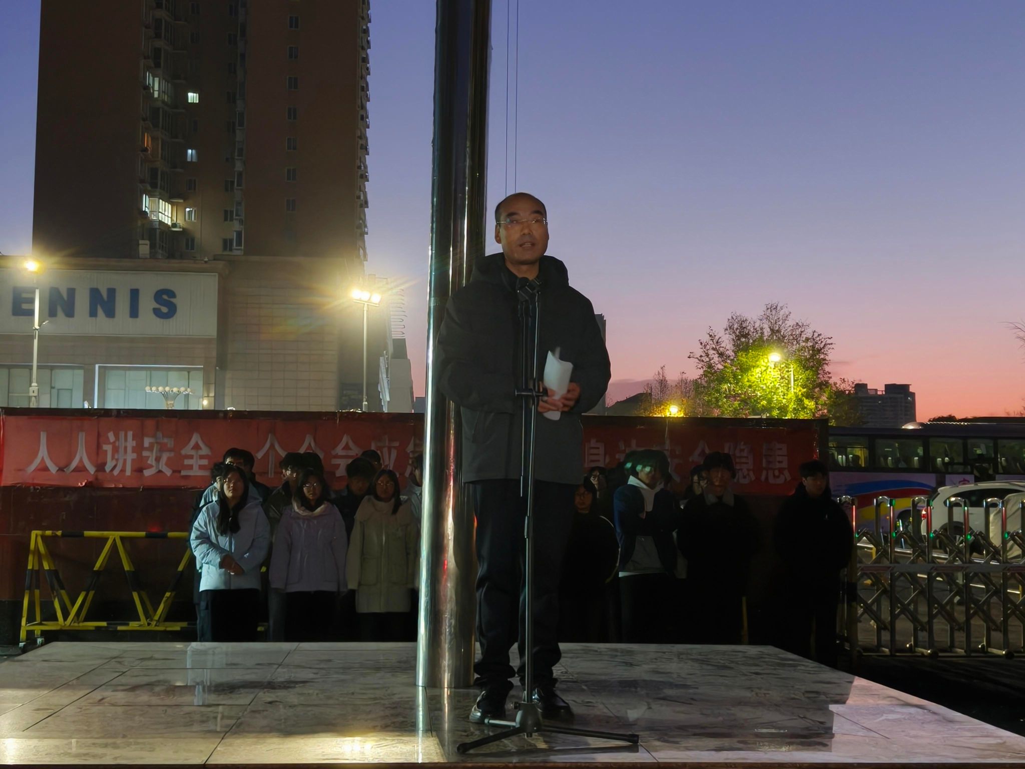 仪式上,公司党总支书记张国路做国旗下讲话,他从“以史为鉴,在血色记忆中凝聚自强守法的精神内核”、“以安为基,在双重警钟下筑牢守法尽责的校园防线”、“守护校园,在历史与现实的交汇处践行担当守法的吾辈使命”三个方面激励同学们要以史为鉴,自强不息,以安为基,守护校园。