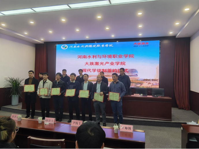 本次拜师仪式是大族激光产业公司开展现代学徒制项目的重要环节,双方确定师徒关系,明确职责,校企双方促进“双导师”育人制度,形成合理、精准、高效的育人机制,让协同育人、双元育人有效落地实施。